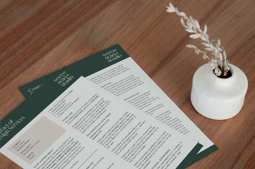 Contracts are imperative when dealing with clients! Before Seven Stars Studio, I used to work with clients without contracts, and I regretted it, so when I was planning Seven Stars Studio, I wasn’t planning on opening my books until I got my contracts in order.